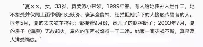 为了让信徒害怕,“全能神”邪教会不断给信徒们讲诋毁“全能神”之人遭惩罚的事例。比如: