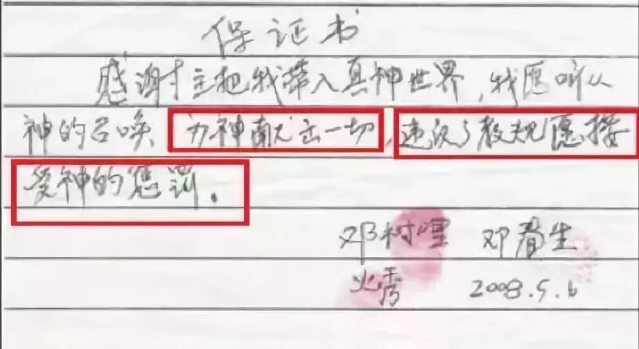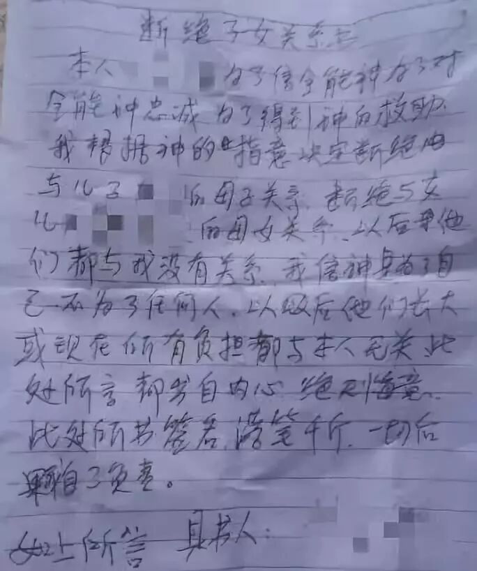 而为了强化精神控制,除了每天不断“吃喝神话”给信徒灌输要绝对顺服“神”的思想,每个入教者还要立下“毒誓”,以不断恐吓的方式,进一步禁锢他们的行为。