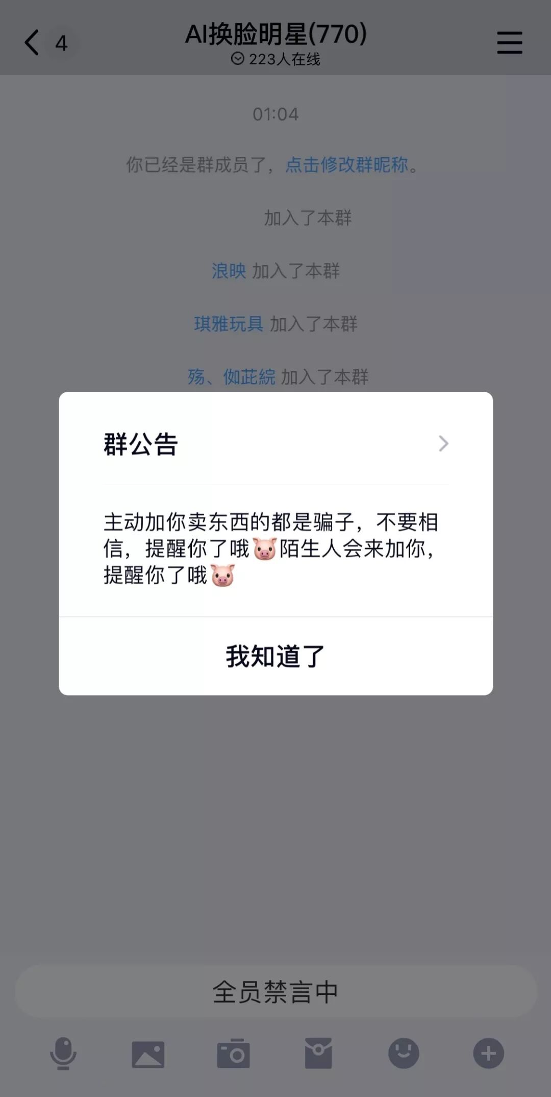 此外,在一些与“AI换脸”相关的QQ群内,还有一些卖家称可以传授AI换脸技术,“包教包会,价格公道”,并且还可以赠送全套明星换脸视频资源。据了解,“学习”AI换脸技术的学费约在500元上下,最快四五个小时就能学会。