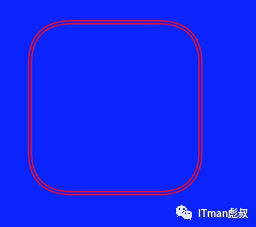 ctx.restore(); 代码的思路是,首先使用纯色blue绘制了一个背景,然后使用线条颜色red绘制一条线,然后使用较小的线宽,并把线条颜色改成背景颜色blue,绘制另外一个条线段。最终的绘制效果如下: