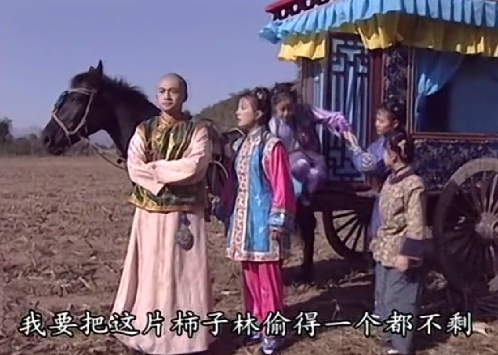 请打开《还珠格格》第二部31、41集,小燕子紫薇离家出走逃亡,路上小燕子偷了两回柿子,全被当地农民给抓住了。