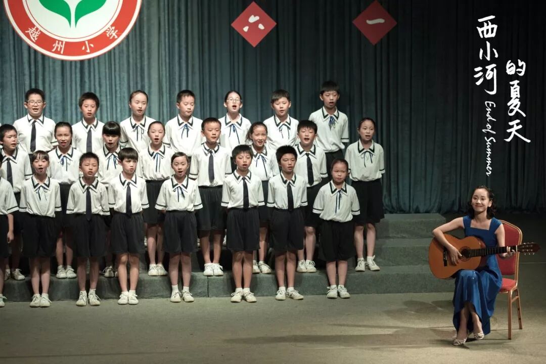 一上来就抱着吉他带孩子们唱歌。
