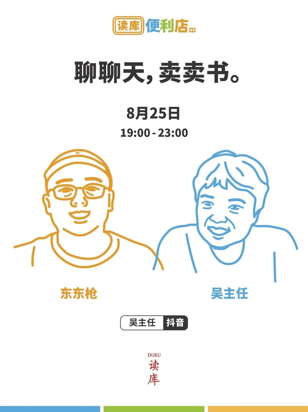 花开两朵,各表一枝。再说今年春天的时候,读库大客厅激起若干次欢声笑语唇枪舌剑。我们安排了若干次业务学习,邀请有关师长和亲友来给号号脉,拿拿龙,让我们开开眼,醒醒脑,提提神,这其中,就有当年奋战在牛博网和微信公号一线的吴主任。他从大厂辞职后,在下一个工作间隙,做起来抖音荐书的工作,结果越做越顺手,眼见着下一个工作没必要找了。
