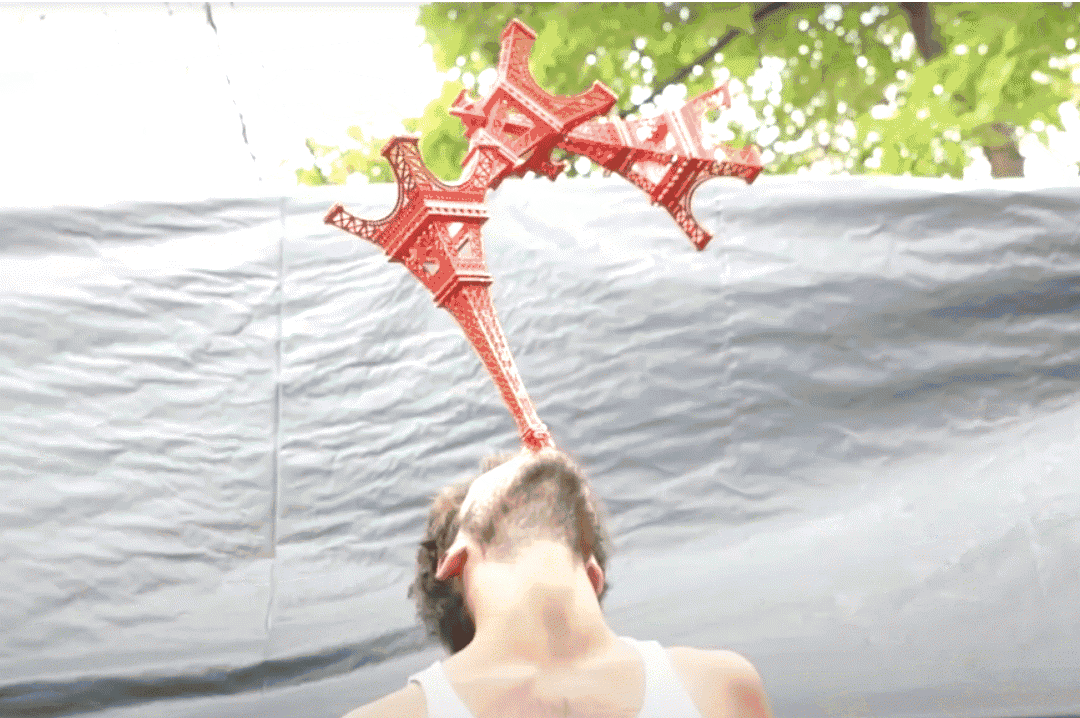 我们还能看到神奇的杂耍、神秘的木偶戏表演、以及——瓦尔达、卡地亚当代艺术基金会主席和馆长的人形牌,人们可以肆意地用手中的布球去“攻击”这三个牌子。