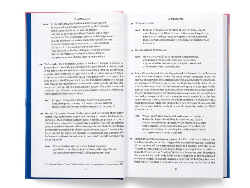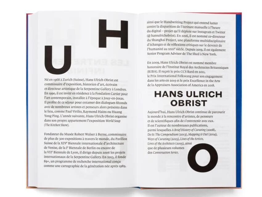 *自2014年以来,卡地亚当代艺术基金会见证了小汉斯与全世界艺术家、建筑师、科学家及思想家无数场马拉松式的“无限的访谈” (Les Entretiens Infinis),如:艺术家雷蒙·德巴东、黄永砅、建筑师石上纯也与让·努维尔、舞蹈家本杰明·米派德、诗人、画家伊黛尔·阿德楠等人。2019年,卡地亚基金会将2014-2018这四年间的所有谈话内容收录在册,以书本形式与大家见面。喜欢的朋友转发这篇文章并给我们留言,即可有机会获得这本囊括了30场精彩的对话的访谈录。