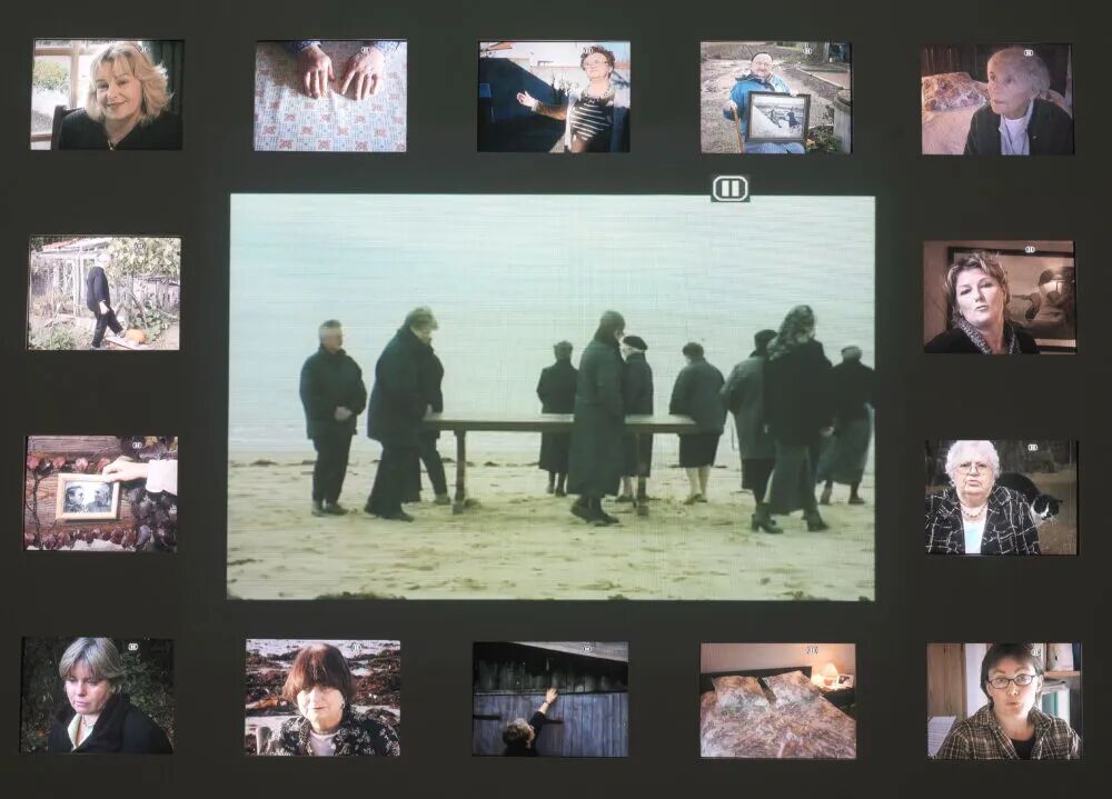 展览中还有很多不同的内容,除了当地岛屿上居民们的肖像,瓦尔达还记录了一个特别的人群——努瓦尔穆捷岛的寡妇们。在展览四周的屏幕上,循环播放着关于14位寡妇的故事。观众需要在瓦尔达事先布置好的14把椅子中找一把坐下,并戴上耳机聆听寡妇们的话语。