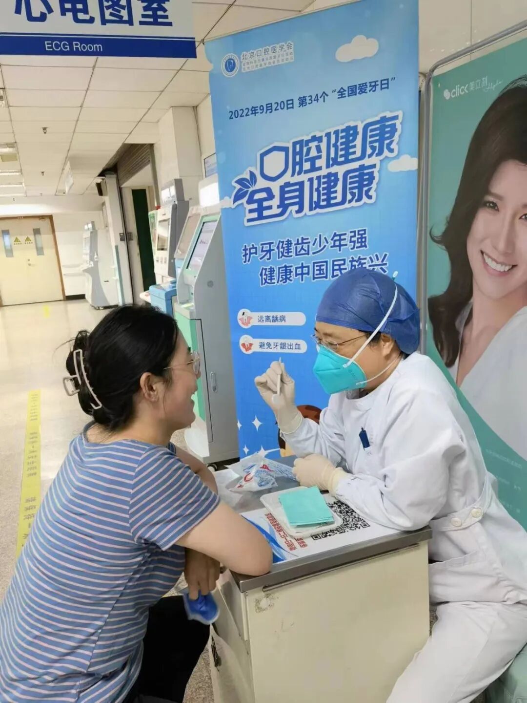 2022年9月20日上午,北京航天总医院在口腔科分诊大厅举办爱牙日科普活动,免费为群众义诊、咨询、科普口腔保健。这次活动重点关注青少年口腔保健,人们的咨询主要集中在简单易行的家庭口腔护理方式方法、口腔护理产品的适用性等口腔自我护理领域。截至上午11:00,“口腔健康 全身健康”爱牙日活动圆满结束,线下咨询近百人次。