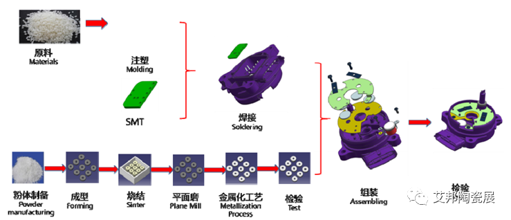 氧化铝、氮化铝等陶瓷粉料在流延环节投料,封口环、引线、焊料等管壳零件在钎焊环节投料,氰化亚金钾电镀液在镀金环节投料。