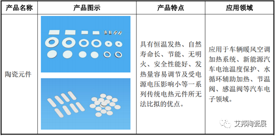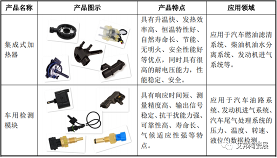 该系列产品主要包括陶瓷元件、集成式加热器、车用检测模块,其产品的特点及应用领域如下: