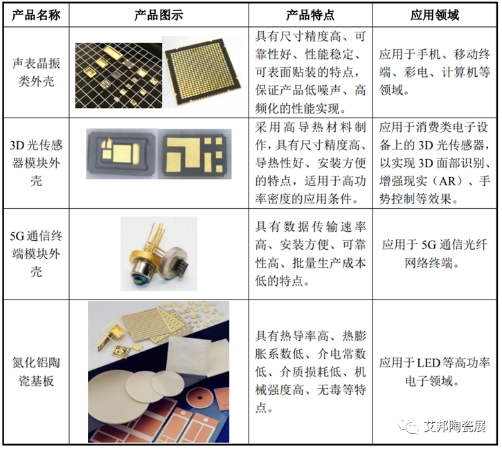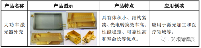 电子陶瓷外壳主要产品包括通信器件用电子陶瓷外壳、工业激光器用电子陶瓷外壳、消费电子