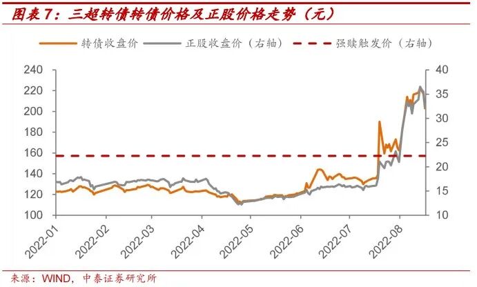 三超转债于2021年2月1日进入转股期,赎回条款的触发条件为:15/30,130%,截至8月19日收盘,正股股价在15个交易日中已有13个交易日高于赎回触发价,只要在剩下的15个交易日中有2个交易日正股股价高于赎回触发价,便可触发强赎条款。