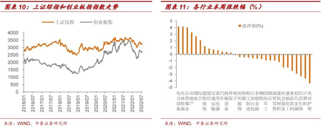 本周上证综指和创业板指涨跌互现。截止8月19日收盘,上证综指下跌0.57%,报收3258.07点;创业板指上涨1.61%,报收2734.22点。