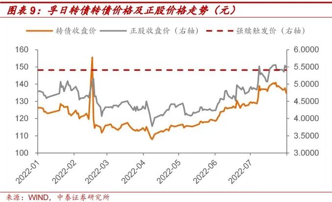 孚日转债于2020年6月23日进入转股期,赎回条款的触发条件为:15/30,130%,截至8月19日,正股股价在18个交易日中已有10个交易日高于赎回触发价,只要在剩下的12个交易日中有5个交易日正股股价高于赎回触发价,便可触发强赎条款。