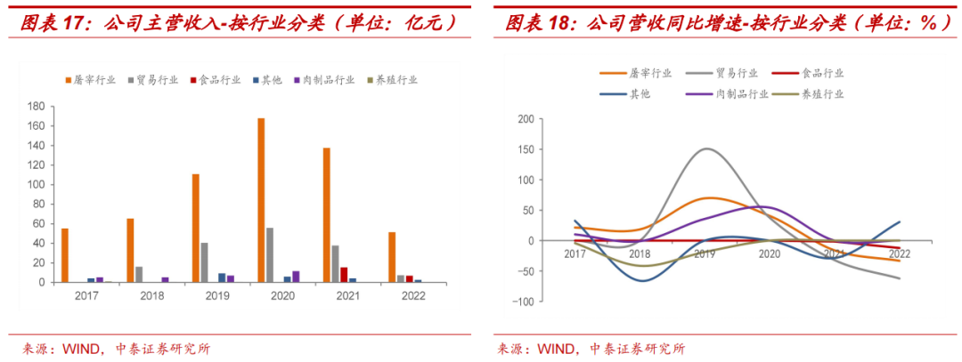 政策推动屠宰产业集中化发展,公司具备先发优势。截至2020年末,屠宰行业的CR5仅为5%(按屠宰数量统计),目前我国从政策上已经大力推动养殖规模化,屠宰规范化,加强屠宰行业的市场整合。特别是2019年开展的落实生猪屠宰环节“两项制度”,行业集中度明显提升。2022年3月,公司屠宰产能已达到1100万头/年。