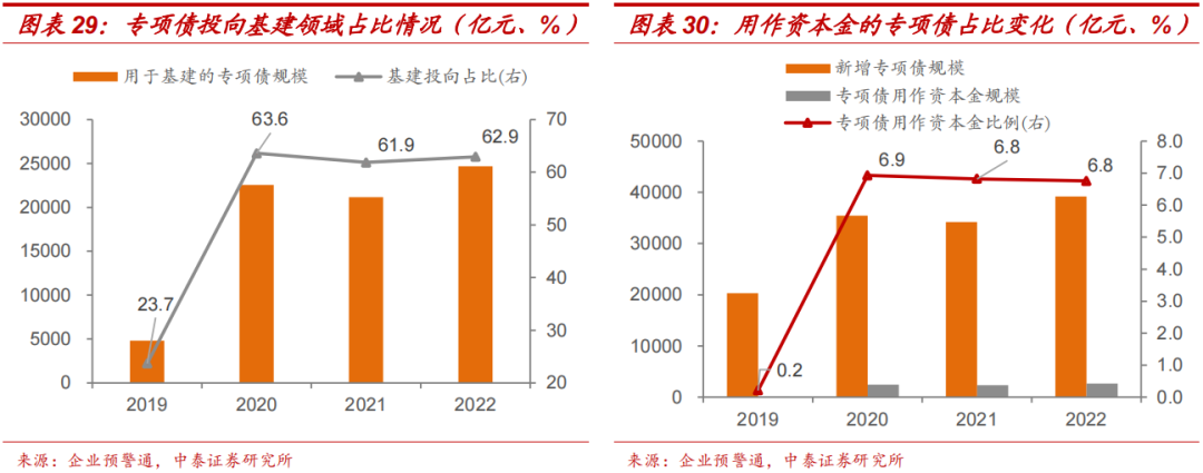 近期监管部门向地方预下达了2023年提前批额度,方便地方根据额度储备项目。投向领域上,从原来的交通基础设施等9个领域扩大到11个领域,增加新能源项目和新型基础设施2个领域;可用作项目资本金的领域增加新能源项目、煤炭储备设施、国家级产业园区基础设施等3项,因此扩大至13项。不过,专项债作资本金的投向领域限制只是制约专项债作资本金的一个原因,其他原因包括项目收益不足、实操相对复杂、部分地方出于防控债务风险控制专项债作资本金等,这些问题有待进一步解决。