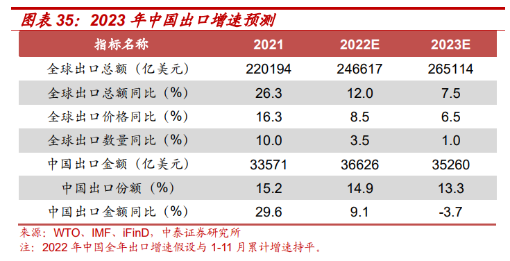 4)随着外需放缓和出口份额回落,预计2023年出口同比增速降至-3.7%。