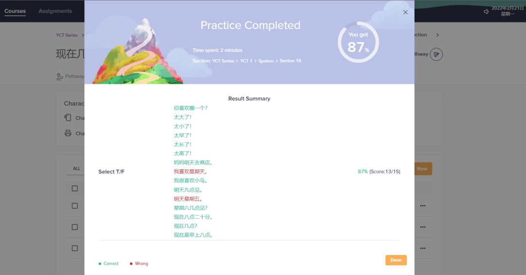 The curriculum resources come from the standard courses of the Chinese language examination board, which conform to the requirements of the HSK examination syllabus. Practice resources imitate HSK test questions. Set yourself a daily training schedule and simulate the actual examination experience.