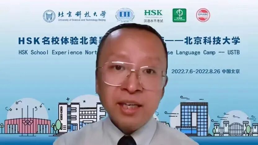 On July 6, 2022, the opening ceremony of HSK School Experience North American Summer Chinese Language Camp - USTB was held online. The camp is co-hosted by Chinese Testing International Co Ltd (CTI) and University of Science and Technology Beijing, and is supported by Greater Miami Asian Business Coalition (GMABC) Chinese Test Center and HSK Toronto Centre. The eight-week online tour to learn about China and Chinese thus began. Li Peize, General Manager of CTI, Zhao Baoyong, Director of USTB International Student Center, Zuo Qian, Director of GMABC, Zeng Hongping, Deputy Director of HSK Toronto Centre, and USTB teaching management staff members met with 115 international students from the US and Canada online during the opening ceremony.