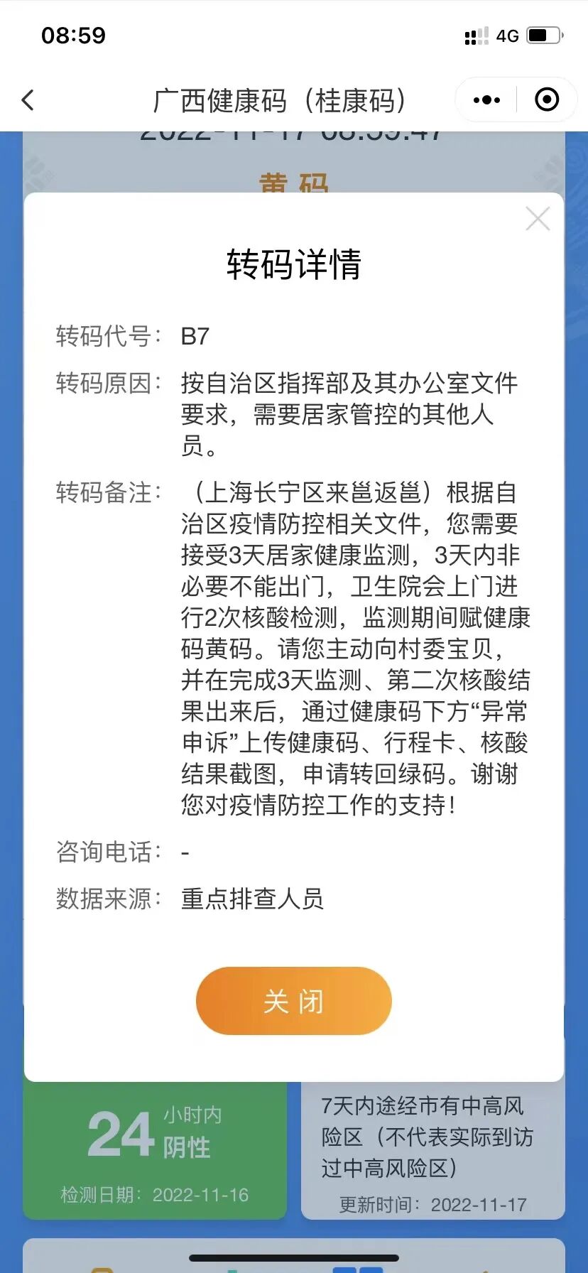 因家里有事,11月15日上午从上海起飞,落地南宁吴圩国际机场。在出机场的过程中,因为行程卡上带有深圳的行程,被机场管控起来,并被要求闭环转运。本文将还原当日机场的离奇经历,给之后回邕的小伙伴做个参考,以及要抵邕出差的老板们一个预告。
