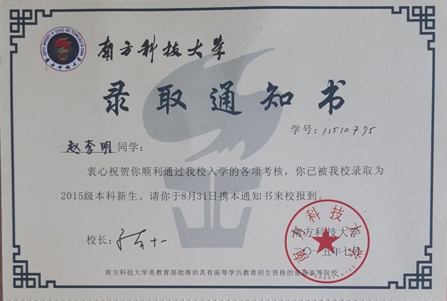 我知道南科大这所高校是高三的时候偶然间听同学讲起的,于是自己去了解了一下,感觉这所学校非常的国际化,这与我高中就确定的未来规划——出国留学,是非常契合的。并且南科大的年轻和活力与家乡高校的古老和厚重产生了巨大的反差,这让我也十分想借此机会走出家乡去看一看,所以高考后并没有太纠结,南科大就成为了我的第一选择。