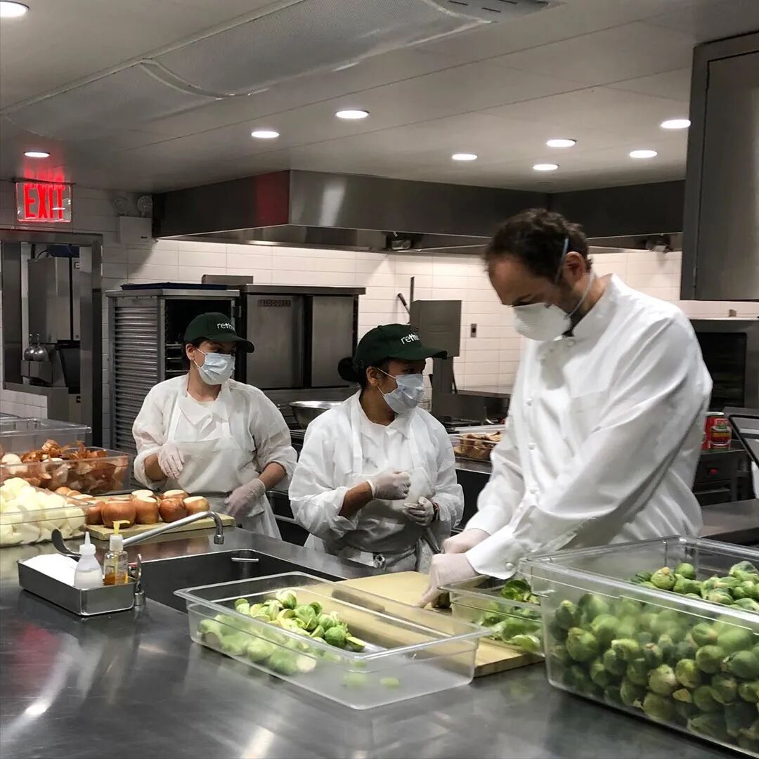 “在和餐厅前厨师,现任慈善非盈利组织负责人Matt Jozwiak商议后,我们发现,能利用Eleven Madison Park开阔敞亮的中央厨房,一应俱全的烹饪设备,以及素质供应的厨师队伍,为那些点不上饭的医护人员送餐。”上周三,Daniel Humm就召回了暂时停薪留职的12名餐厅厨师,组成专门的备餐小组,从每日破晓就开始,根据捐赠的食材和剩余的库存,准备餐食。