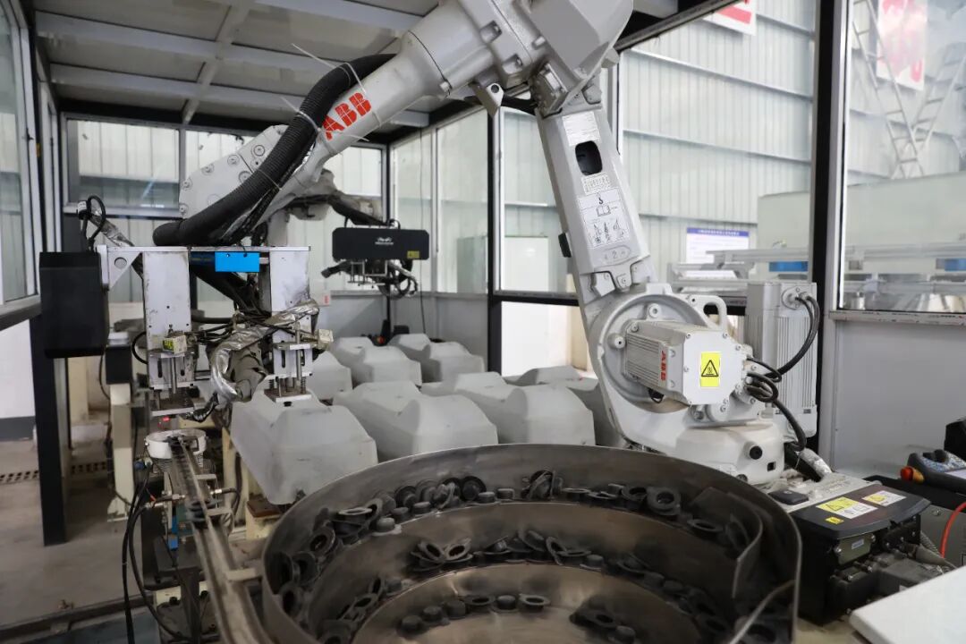 智能双块式轨枕厂的机械臂在对轨枕进行加工 莫小斌摄