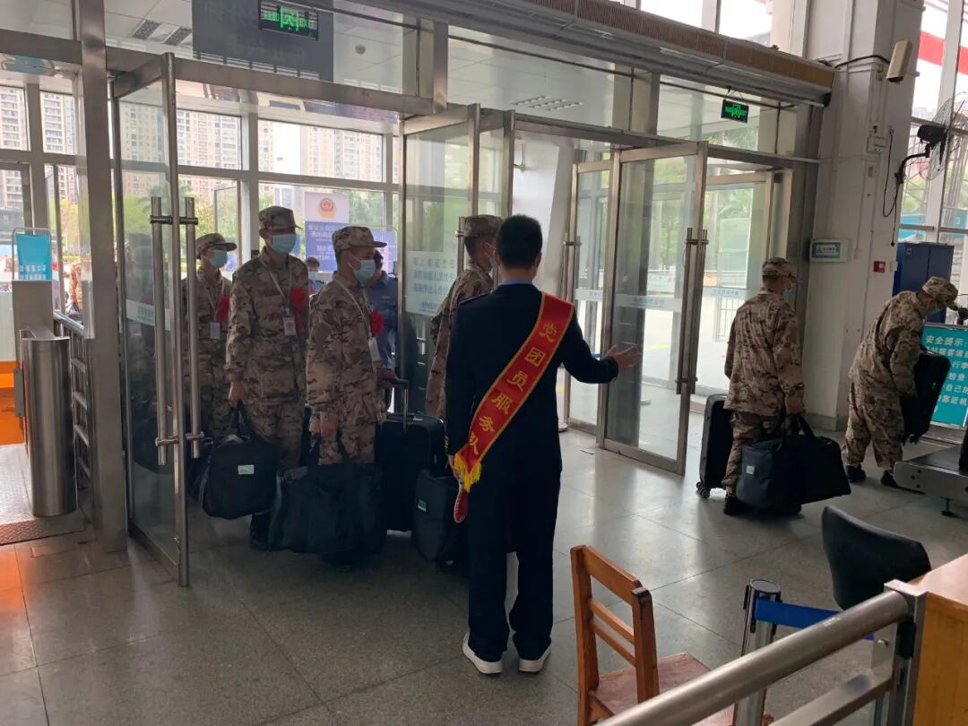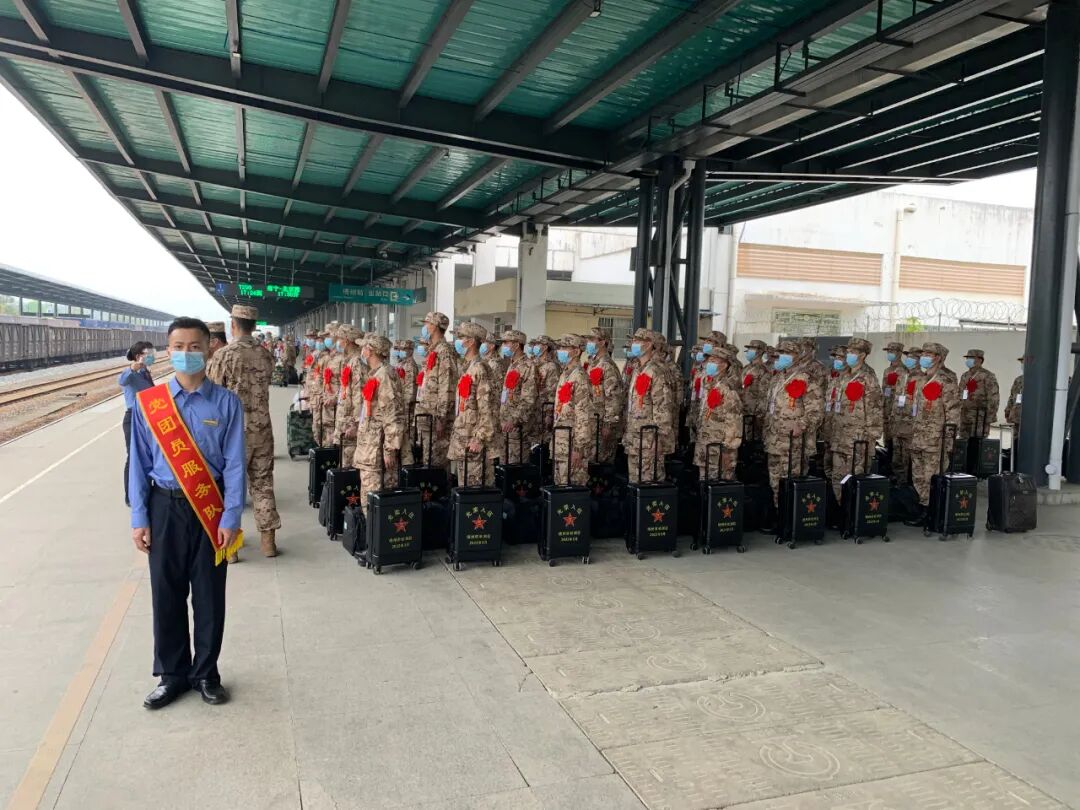 3月17日,梧州南、梧州、藤县、贺州站共迎来600多名新兵,他们将奔赴军营,履行保家卫国的神圣使命。梧州车务段(桂东铁路)认真贯彻落实部署安排,科学制定运输方案,加强疫情防控,强化客运组织,确保新兵运输投送工作科学安全有序。