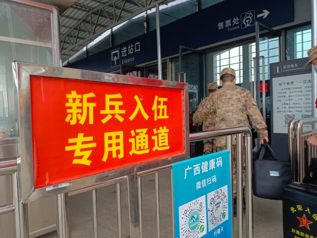 梧州南、藤县、梧州、贺州站分别为新兵开设进出站专用通道,划出专用候车区域,安排专人检票、专人引导、提前乘车等专项服务工作,同时组织休班职工组成党员服务队和青年志愿者服务队,协助做好组织工作。