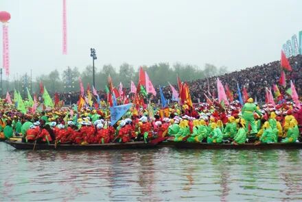 起源于宋代的溱潼会船节是溱潼厚重文化积淀的典型代表,相传宋代岳飞部将张荣、贾虎与金兵“大战溱潼村”,溃敌于缩头湖。溱潼人为追悼忠魂,每逢清明,便撑篙划桨,汇聚溱湖,竞舟礼祭,演绎戏文神话。