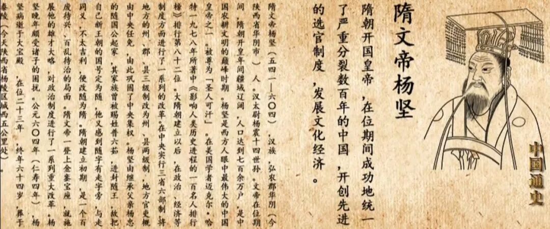 黄正建:因为从魏晋南北朝以来,地方官主要都是由当时地方长官来自己辟属了,这样就造成一个弊病,就形成了一个地方这种小集团,或者说这个地方的割据,对于中央的统一的领导是非常不利的,那么杨坚看到这种弊病,所以他当皇帝以后呢,他就做了一个改革,就把所有的用人权、任命权都收归中央。