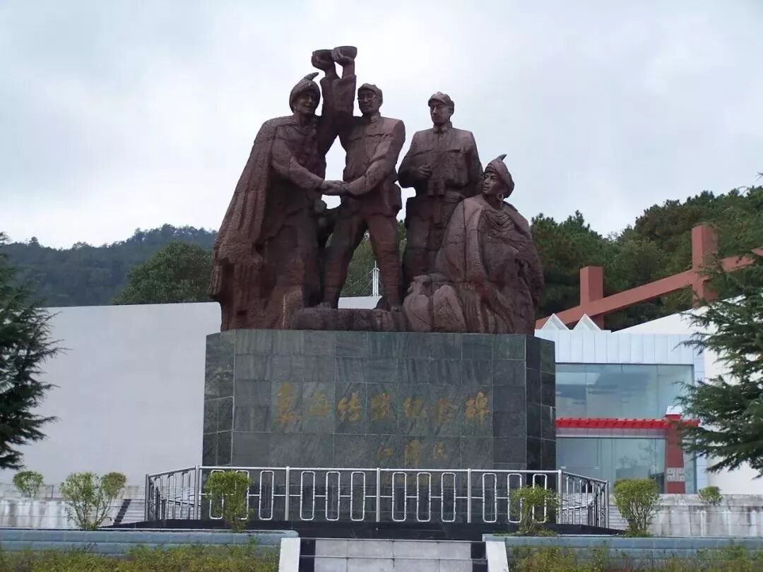 现在在西昌,还矗立着刘伯承和小叶丹的雕塑像,纪念的就是历史上着一段佳话。结盟仪式之后,小叶丹将自己骑的黑骡子送给了刘伯承,而刘伯承也当即解下腰间的手枪送给了小叶丹。时间已是近黄昏了,夕阳的余辉映红了海子里的水,湖光山色,十分迷人。聂荣臻考虑,通过彝族区尚有一百余里,不如明天一早再出发。刘伯承说:“好,我们就学司马懿,倒退30里。”接着,他便热情地邀请小叶丹叔侄一行和他们一起回大桥镇宿营。刘伯承深知彝人善饮,所以当大家回到营地后,他又让指挥部的工作人员买来了大桥镇所有的白酒,并按价付钱收下了群众送来的猪羊肉,设宴庆贺结盟。宴后,刘伯承同小叶丹彻夜长谈。小叶丹说,自己从未见过这么好的汉人,特别是像刘伯承这样的大人物,如此诚恳友好,谦和坦率,让他这个饱受苦难,纯朴豪迈的彝族兄弟深受感动。他说他也要跟着刘伯承一起闹革命,他们沽基家整个部落都要闹革命。于是,刘伯承批准小叶丹成立“中国工农红军咕基支队。”并代表红军将一面书写着“中国彝民红军沽基支队”的红旗授予小叶丹,任命他为支队长。![]()