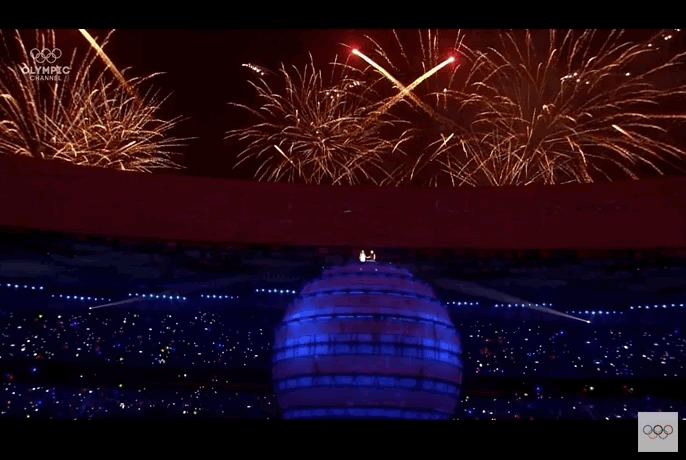 刘欢和莎拉·布莱曼演唱奥运会主题曲《我和你》。
