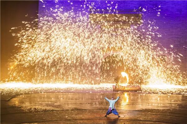 当他把一勺铁水奋力抛洒向城墙的时候,一颗颗珍珠般大小的红色水珠"哗"的一下,炸成了一簇簇小伞状的金黄色火花,顺着城墙向远处四散开来,观众们不约而同地发出一片惊呼。
