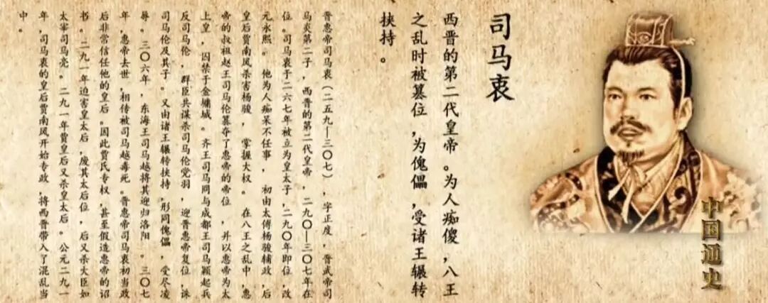 徐金星:八王之乱,它严重的或者巨大的打击了,消弱了西晋王朝的力量,还有,他这个长期的战争造成了西晋王朝,尤其是黄河流域严重的经济破坏、经济崩溃,由于这些原因、就使黄河流域的汉族人民,其实也包括非汉族人民,都受到了极其严重的灾难。这样,同时也就给北方的少数民族进入中原,创造了这么一个机会。