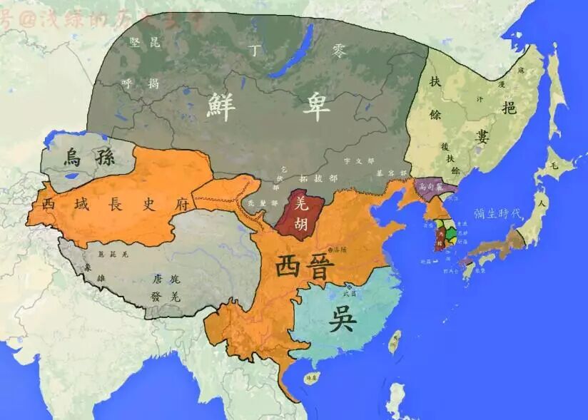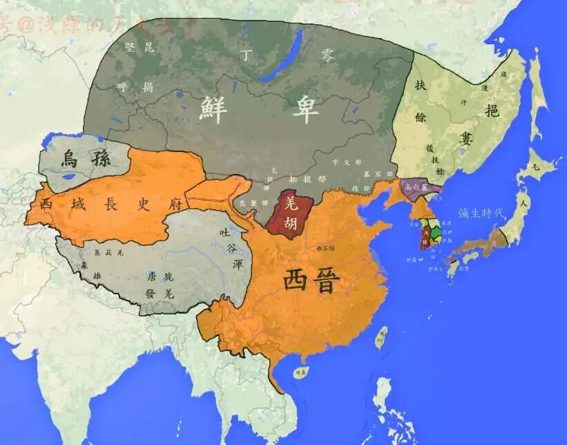 公元304年,刘渊建立汉国,从刘渊开始,百余年间,生活在西晋西部、北部及东北部的游牧民族匈奴、鲜卑、羯、羌、氐,先后建立了大大小小几十个国家,与中原王朝进行对峙,这就是后人所说的五胡乱华。随着刘渊势力的扩大,各地起事的队伍纷纷投到他的帐下,其中包括奴隶出身的羯族人石勒,在接下来与西晋的战争中,石勒成为了决定西晋命运的关键人物。公元311年,石勒率领铁骑在宁平城展开了一场大屠杀,死者多达十余万,不久,石勒、王弥同刘曜一起会攻洛阳,同年,刘曜攻克长安,西晋的最后一位皇帝晋愍[mǐn]帝袒肩露背,口含玉玺,乘坐羊车,以最屈辱的方式求降,这时距晋武帝击灭东吴、统一全国仅仅过去了37年,西晋灭亡。