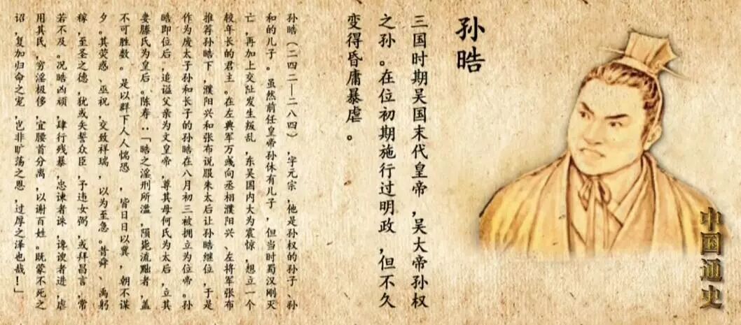 按兵不动的西晋是在等待一个时机,此时,吴帝孙皓刚刚即位,他抚恤百姓,开仓赈贫,放生珍禽,一派明主风范,然而很快,孙皓就让吴国的君臣们失望了。孙皓本性的暴露,让东吴朝野上下笼罩在恐惧的阴影中,在孙皓的命令下,京城建邺大肆修建宫殿,民众服役不胜其苦,正直的大臣上书劝谏,孙皓根本听不进去。孙皓下令,所有大臣家里的女儿,到了15六岁就要任他挑选,选剩下的才准出嫁。此外,皇宫里几乎每天都在进行暗藏杀机的鸿门宴,大臣们的言行举止一有差错,都会被记录下来,被孙皓处以种种酷刑。孙皓的暴虐统治,激起了人们的反抗,甚至发生了近万人参加的暴动,一直打到了建邺城外三十里,还有很多人选择叛逃到晋朝,其中甚至包括吴国的宗室,消息不断传送到西晋朝廷。