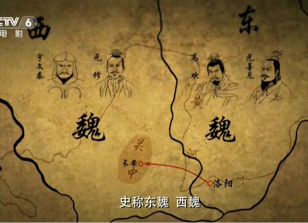 公元534年,北魏最后一个皇帝魏孝武帝元修,忍受不了权臣高欢的控制,轻装简从,离开洛阳,西奔长安,投靠关中的宇文泰,关中成为魏朝的正朔所在,高欢不甘心丢掉魏朝正朔,在东部洛阳另立元善见,即魏孝静帝,北魏由此分裂成两个朝廷,史称东魏、西魏,东魏、西魏控制了中国的北方,与南方的梁朝鼎足而立,形成南北朝新的格局。此时,战火主要在东魏的高欢和西魏的宇文泰之间展开,高欢、宇文泰同为武将,都是在六镇起义中脱颖而出,如今却互为仇敌,都想争霸中原,统一中国北方,但力量悬殊,形成强与弱的鲜明对比。东魏军队原属于北魏六镇的20多万彪悍善战的将士,西魏军队只不过是六镇军队的偏师而已,合起来也不过三万余人。