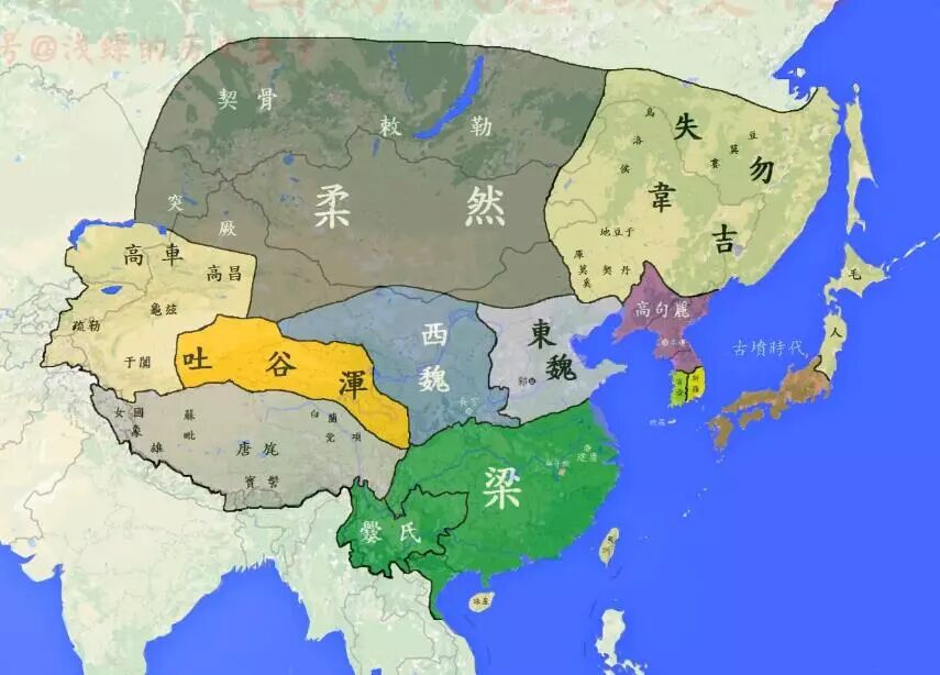 妖姬脸似花含露,玉树流光照后庭,花开花落不长久,落红满地归寂中,这首曲子名叫《玉树后庭花》,常被后人称作亡国之音。这是南朝最后一位皇帝陈后主与嫔妃们的唱和之作,陈后主不理朝政,日日夜夜沉湎声色,不久陈后主的江山就如那花期短暂的后庭花一般凋零破碎了,此前的300多年,类似亡国之音一直在南北大地上吟唱,这是中国历史上王朝更迭最频繁的时期,在北方,自西晋末年到北魏统一黄河流域期间,五胡十六国,你方唱罢我登场,最短的只存在过八年。在南方,朝代更迭也同样频繁,滚滚长江水,目睹着这些割据政权的兴亡离合和人民的深重苦难。