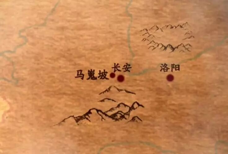马嵬[wéi]坡,这个即使在当时地图上,都很难找到的小地方,因安史之乱而载入史册。唐玄宗一行从长安城逃出后,一路西行到达马嵬坡,兵士发生了兵变,士兵团团围住皇帝歇息的驿站。他们不敢向皇帝发难,却将满腔怒火喷向了杨国忠。杨国忠已死,乱兵又四处搜索,把杨氏一门的人几乎全部杀光。