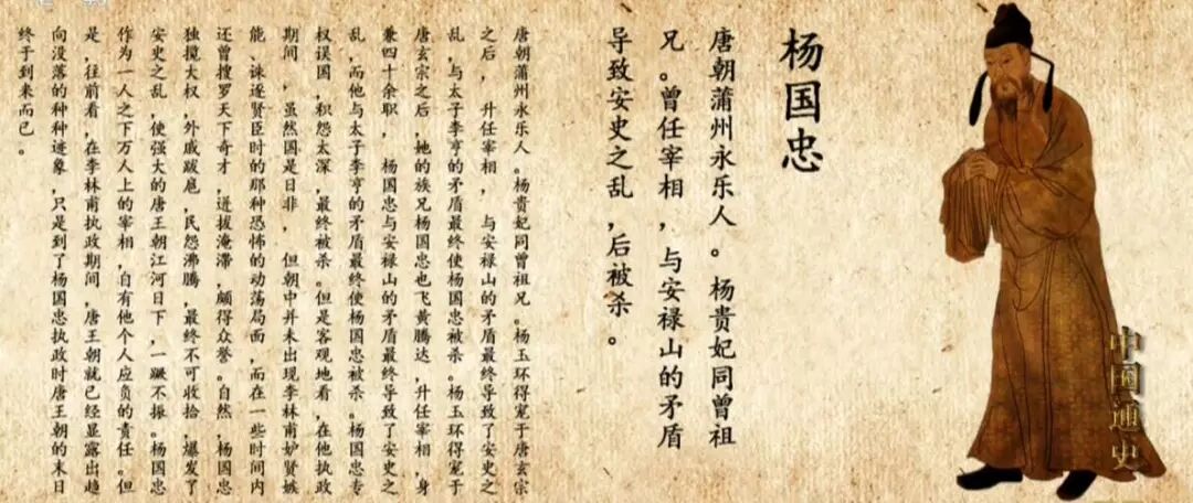 吴宗国:平心而论,杨国忠能够进入朝廷,能够到长安来做官,这个是跟杨贵妃有关系的,但是他能够受到唐玄宗的重用,不是因为杨贵妃,而是因为他本身的才能。什么才能呢,就是理财的才能,就是善于把国家的收入增加。