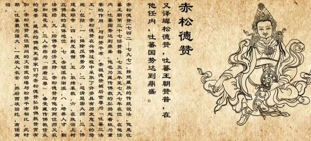 真正使佛教在吐蕃广泛传播的是赞普赤松德赞,很多藏文史籍记载,赤松德赞是金城公主的儿子,这一直是西藏历史中最富争议的问题之一,这位功绩卓著的伟大赞普,确立了佛教在吐蕃社会文化中的崇高地位。在赤松德赞继位之初,权力还掌握在信奉苯教的大臣之手,吐蕃社会的反佛势力依然很大,甚至连大昭寺小昭寺都被改为屠宰作坊。在一些信佛大臣的支持下,赤松德赞严惩反佛大臣,并采取了一系列有力的措施来推行佛教。赤松德赞迎区莲花生大师,寂护论师等天竺汉地高僧入藏弘法,在他的主持下吐蕃修建的桑耶寺,这是吐蕃史上第一座正规寺院。赤松德赞颁布兴佛诏书,并挑选贵族子弟出家为僧,这也是吐蕃正式出现佛教僧人的开始,他赐给每位僧人三户属名作为供养,这就是三户养僧制。