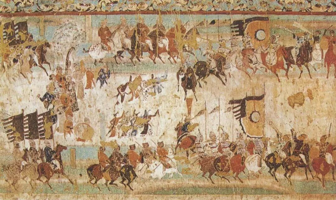 但吐蕃奴隶主统治的主旋律,终归野蛮残暴,敦煌人民为此忍受了近70年苦难。于是,公元848年,敦煌人张议潮带领人民揭竿而起,赶走吐蕃奴隶主,收复瓜州、沙州等地,赶走吐蕃后,张议潮多次派人赴长安联络,渴望重新回到中原政权的怀抱。从画面可看出,当时敦煌及河西各族人民欢庆光复的盛况。敦煌虽然再度回到了唐朝的怀抱,但此时的唐王朝却已经走向衰落,这昭示着敦煌接下来的坎坷命运。