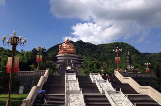 溪口镇背靠风景秀丽的雪窦山,雪窦山是浙东地区的一方宝地。1000年前,一个叫契此的胖和尚经常光顾这里,传说中他永远笑容满面,平日里不修边幅,背着大布袋四处化缘,大家都叫他布袋和尚。后来这个开口能笑,大肚能容的形象被看作是弥勒的化身,雪窦山上的雪窦市成为著名的佛教胜地。