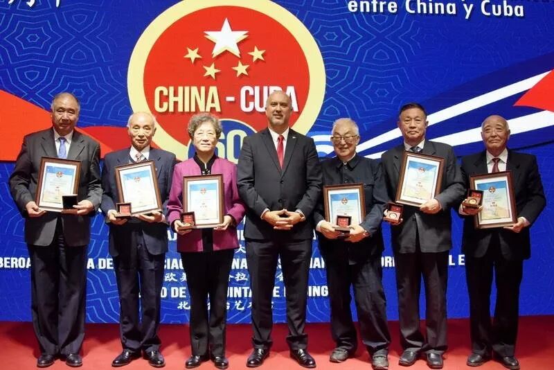 10月30日,在一个颇为隆重的仪式上,古巴驻华大使佩雷拉代表本国政府,将一帧奖状颁授于我,还给我颁发了一枚纪念章,让我回忆起很多历史,当然感到高兴、荣幸、骄傲。今年是古巴与我国建立外交关系60周年,中古双方举行了一系列庆祝活动。昨天的仪式是由中国国际问题研究基金会、欧美同学会拉美分会、古巴驻华大使馆和袁熙坤先生创办的“金台艺术馆”联合举办,气氛庄严肃穆、热烈友好。我是作为客人应邀到场的。作为中国古巴“好朋友、好同志、好兄弟”关系和情谊建设的见证人、参与者和受益者,我当然应该出席,表示高兴,表示祝贺。![]()
