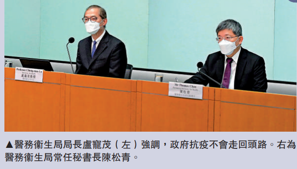 醫務衞生局局長盧寵茂昨日重申,政府抗疫不走回頭路,亦強調「疫苗通行證」將堅持執行。
