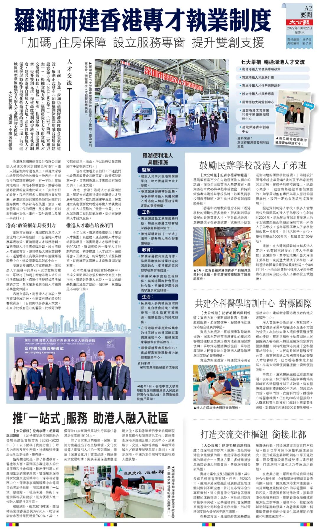 今年以來,羅湖積極推動以「羅湖人才集團」為載體,通過開展人才聯合培養等項目,落實港籍人才服務計劃。到2023年,羅湖將通過一攬子人才計劃的實施,初步構建「人才政策+服務專窗+互動交流」的常態化人才服務體系,從而讓更多國際人才齊聚羅湖就業創業。