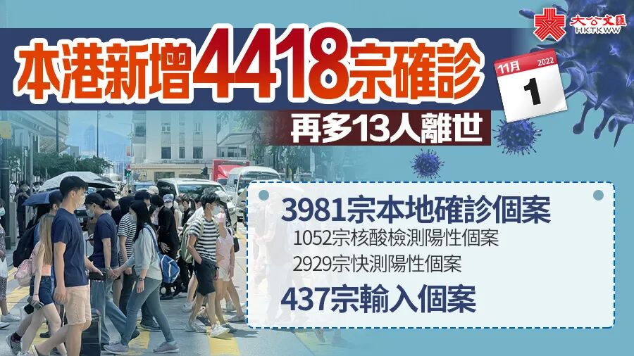 5.香港新增4418宗確診個案,當中包括3981宗本地確診個案及437宗輸入個案,再多13宗死亡個案。