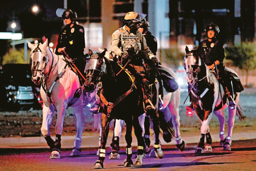 投票日當天,馬里科帕縣執法人員在街上巡邏。(美聯社)