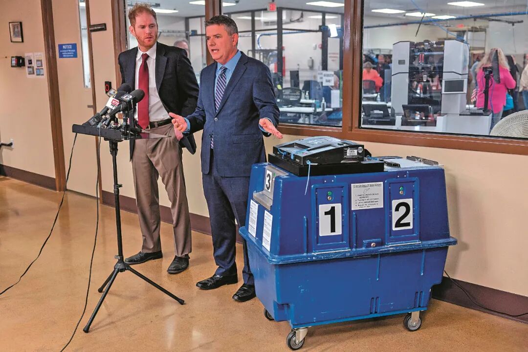 8日,亞利桑那州馬里科帕縣223個票站中的60個出現投票機器故障。當地官員解釋說,打印設備未能在選票上留下足夠深的印記,導致機器無法正常讀取和記錄選票。工作人員建議選民改用其他機器、前往其他票站,或將選票投入一個票箱,由票站人員將其送到中央設施統一處理。