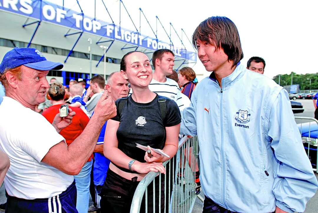 2002年8月17日,李鐵步出球場,與愛華頓球迷見面。